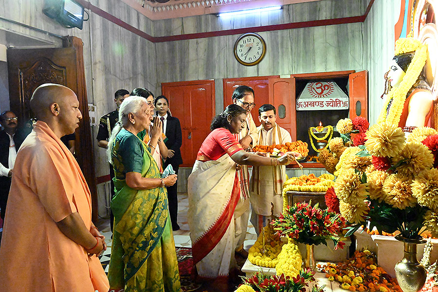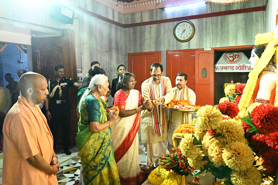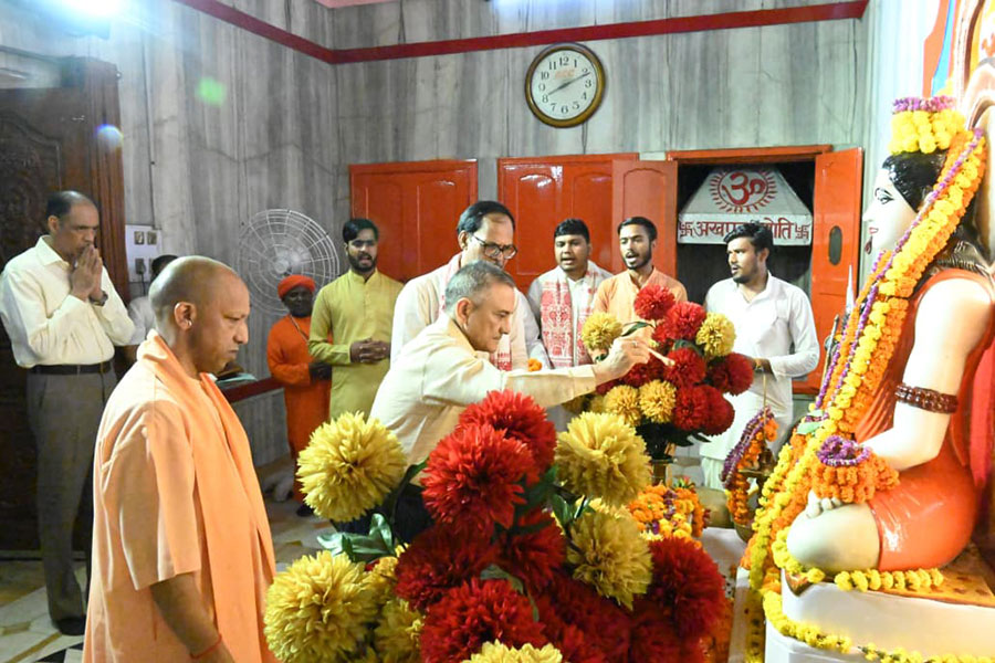 गोरक्षपीठाधीश्वर, महंत श्री योगी आदित्यनाथ जी महाराज ने आज श्री गोरखनाथ मंदिर, गोरखपुर में मा. राष्ट्रपति श्रीमती द्रौपदी मुर्मु जी, उत्तर प्रदेश की मा. राज्यपाल श्रीमती आनंदीबेन पटेल जी एवं मा. केंद्रीय राज्य मंत्री श्रीमती अनुप्रिया पटेल जी का स्वागत किया।